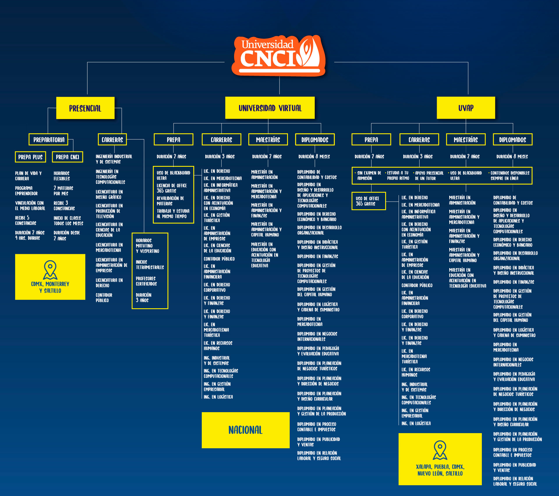 Somos la Universidad con mayor presencia a nivel nacional, ya que contamos con más de 50 centros de enlace en toda la República Mexicana y 3 campus universitarios con sede en Nuevo León, Coahuila y Ciudad de México.